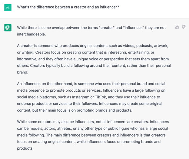 Hi ChatGPT! Let’s talk about creators.